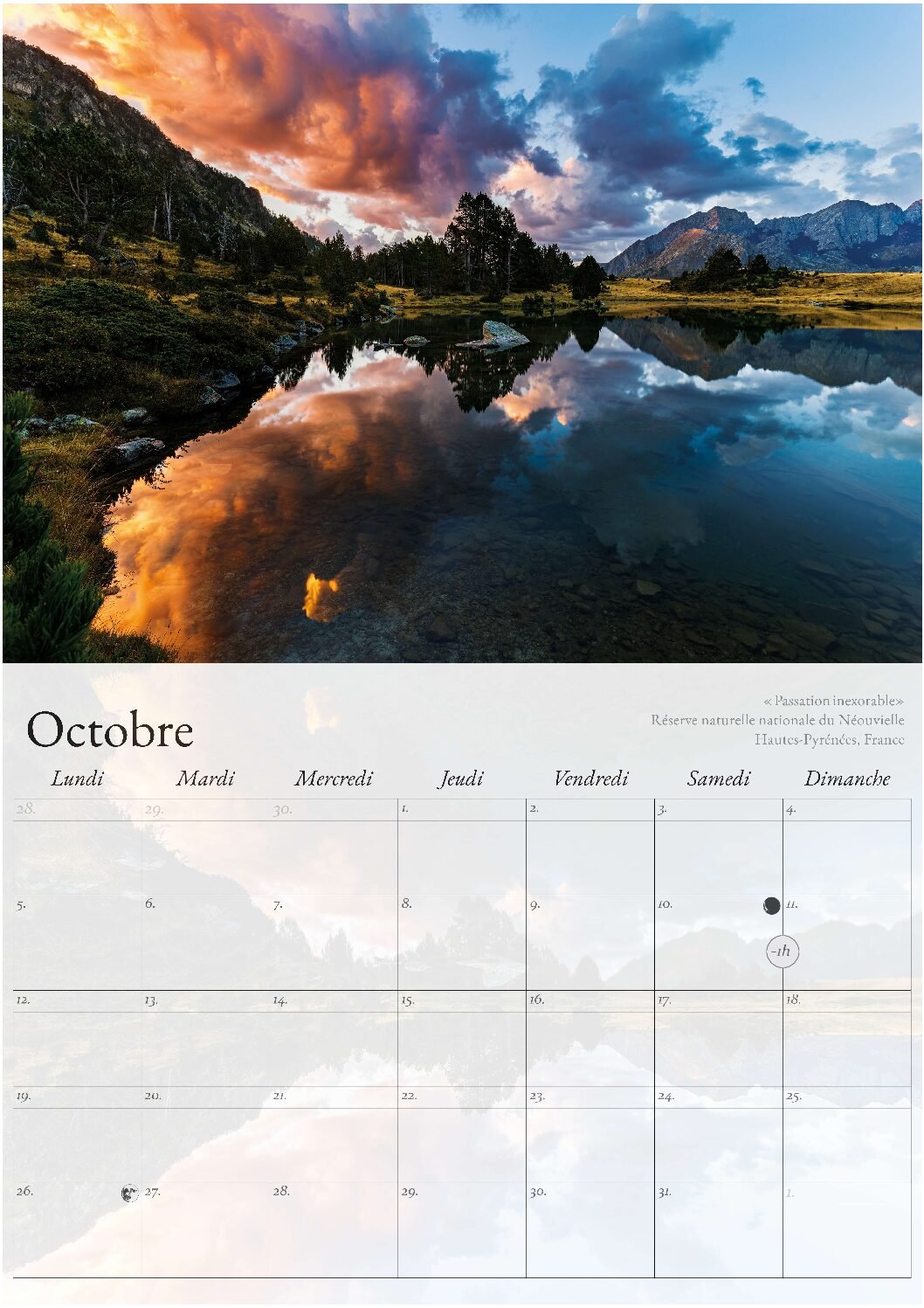Vous-y retrouverez les jours fériés ainsi que les pleines lunes et nouvelles lunes. Enfin, en mars et octobre, vous aurez un petit rappel du passage à l’heure d’été et d’hiver.